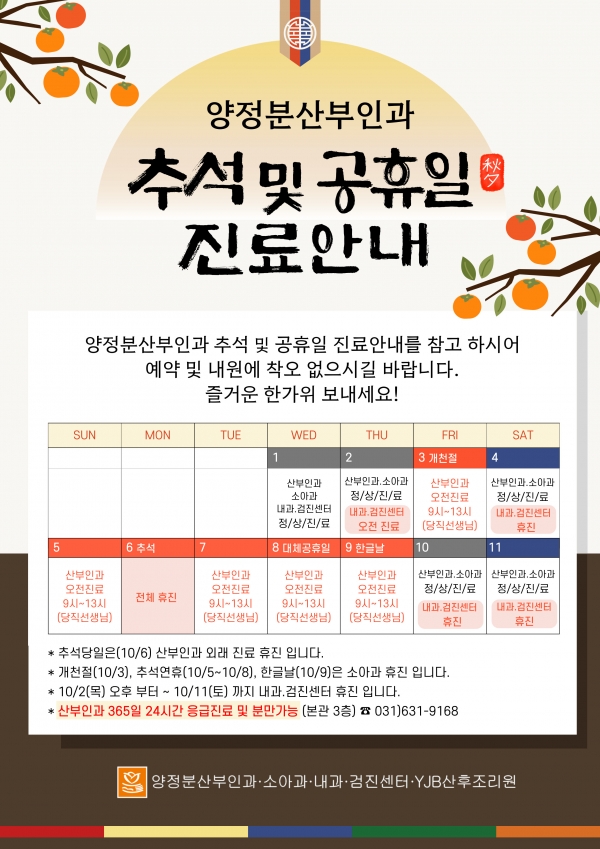 *추석당일은(10/6) 산부인과 외래 진료 휴진 입니다.